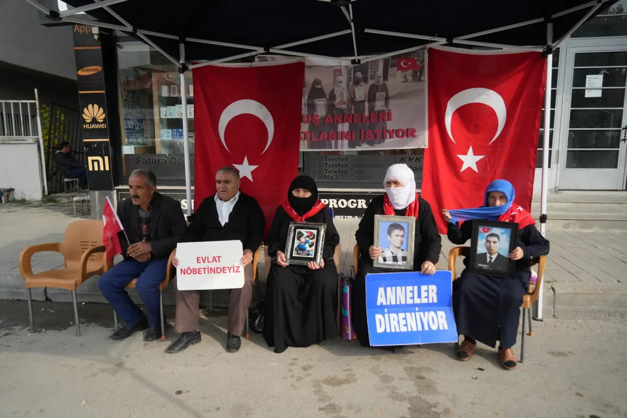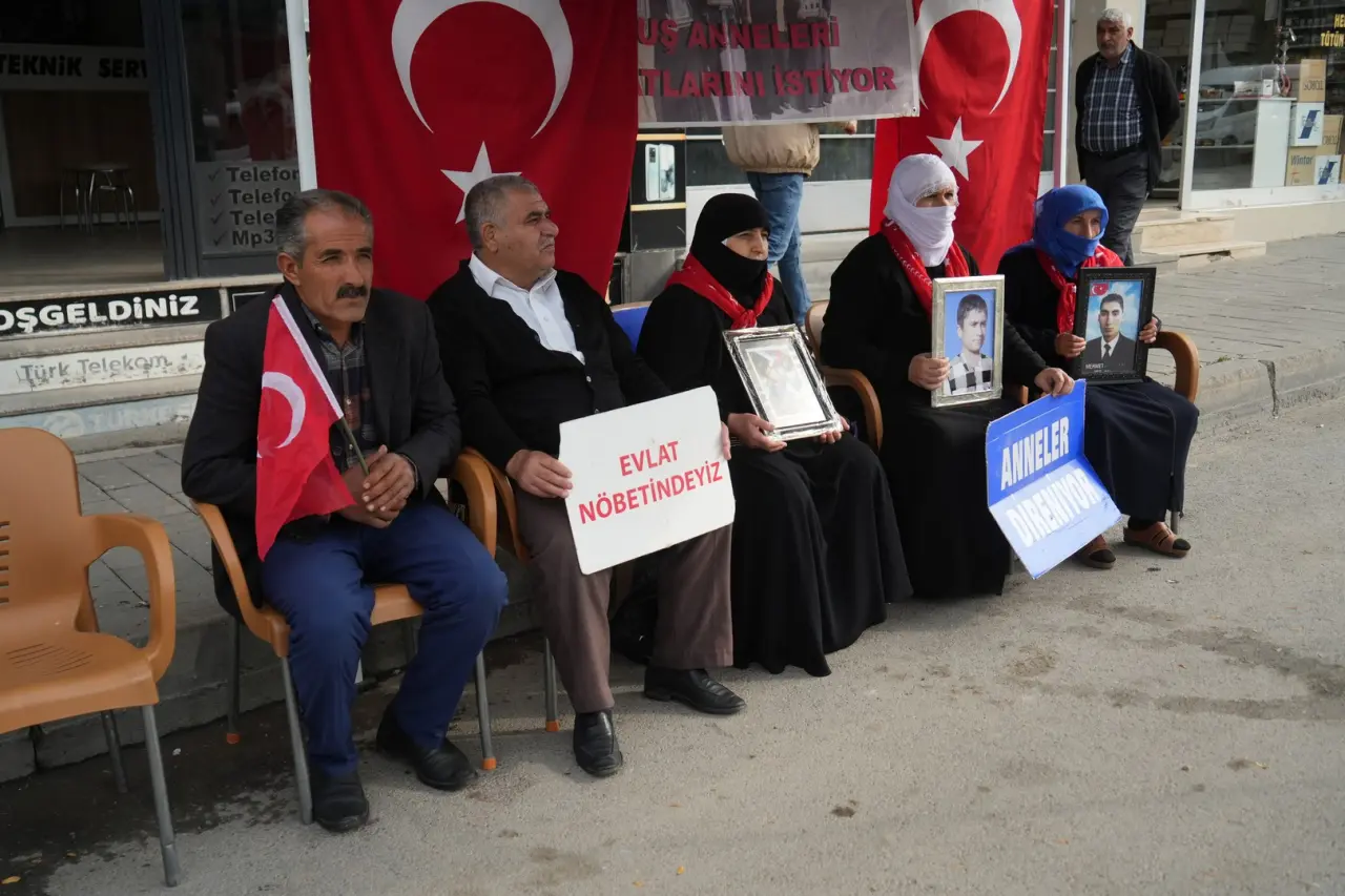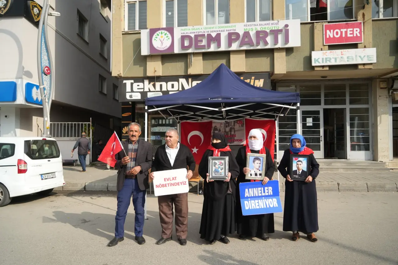 Muş'ta PKK tarafından kaçırılan çocukların aileleri, DEM Parti önünde 221. haftada eylem yaptı.