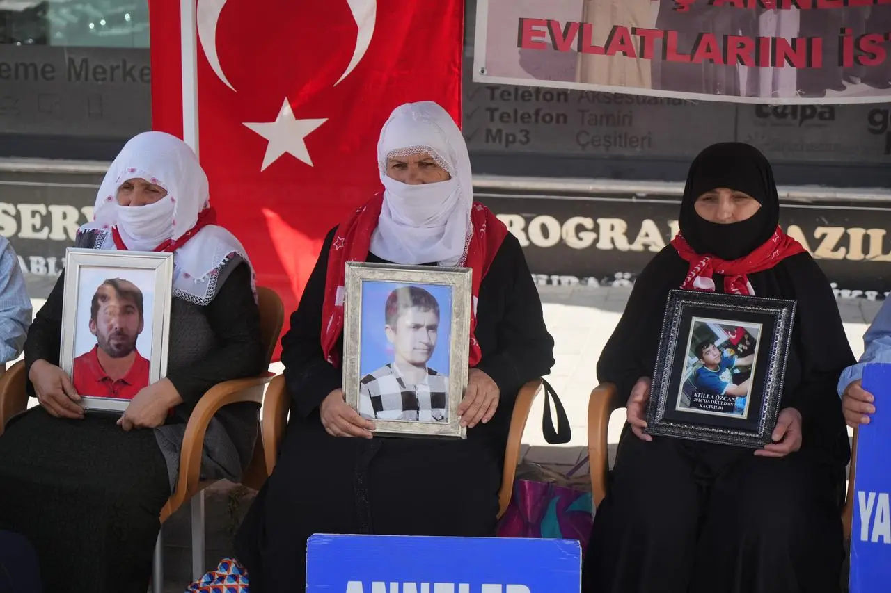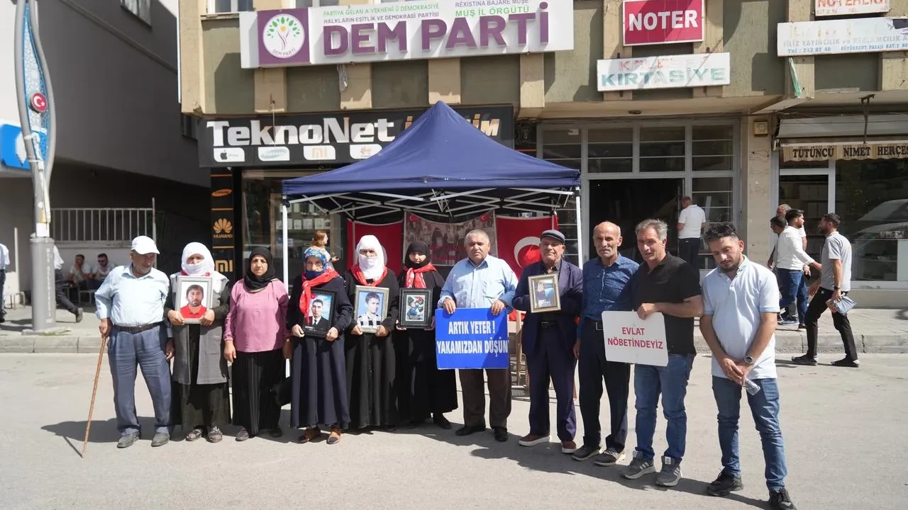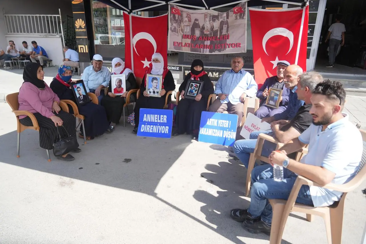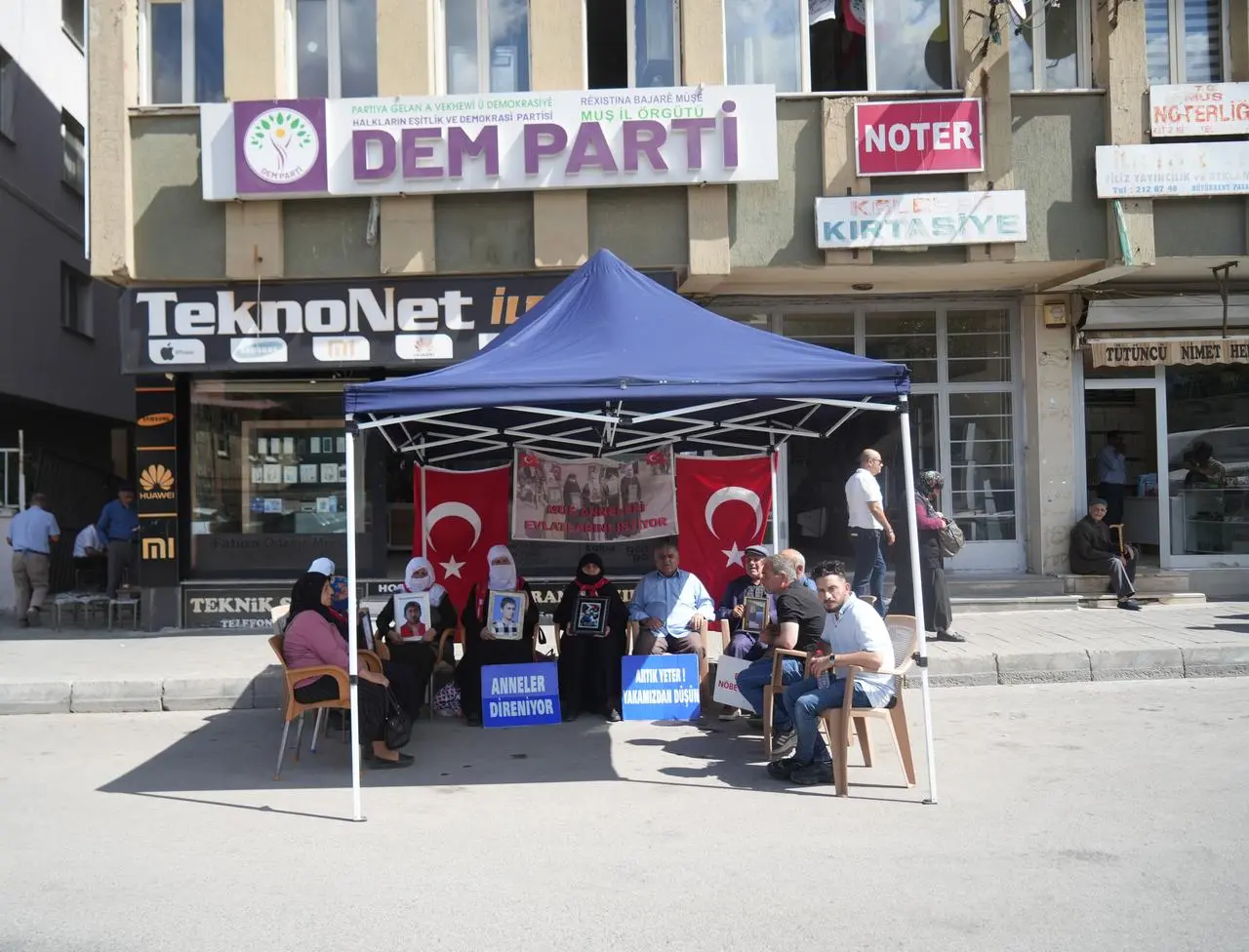 Muş'ta PKK tarafından kaçırılan çocuklarını bekleyen aileler, DEM Parti önünde eylemlerini sürdürüyor.