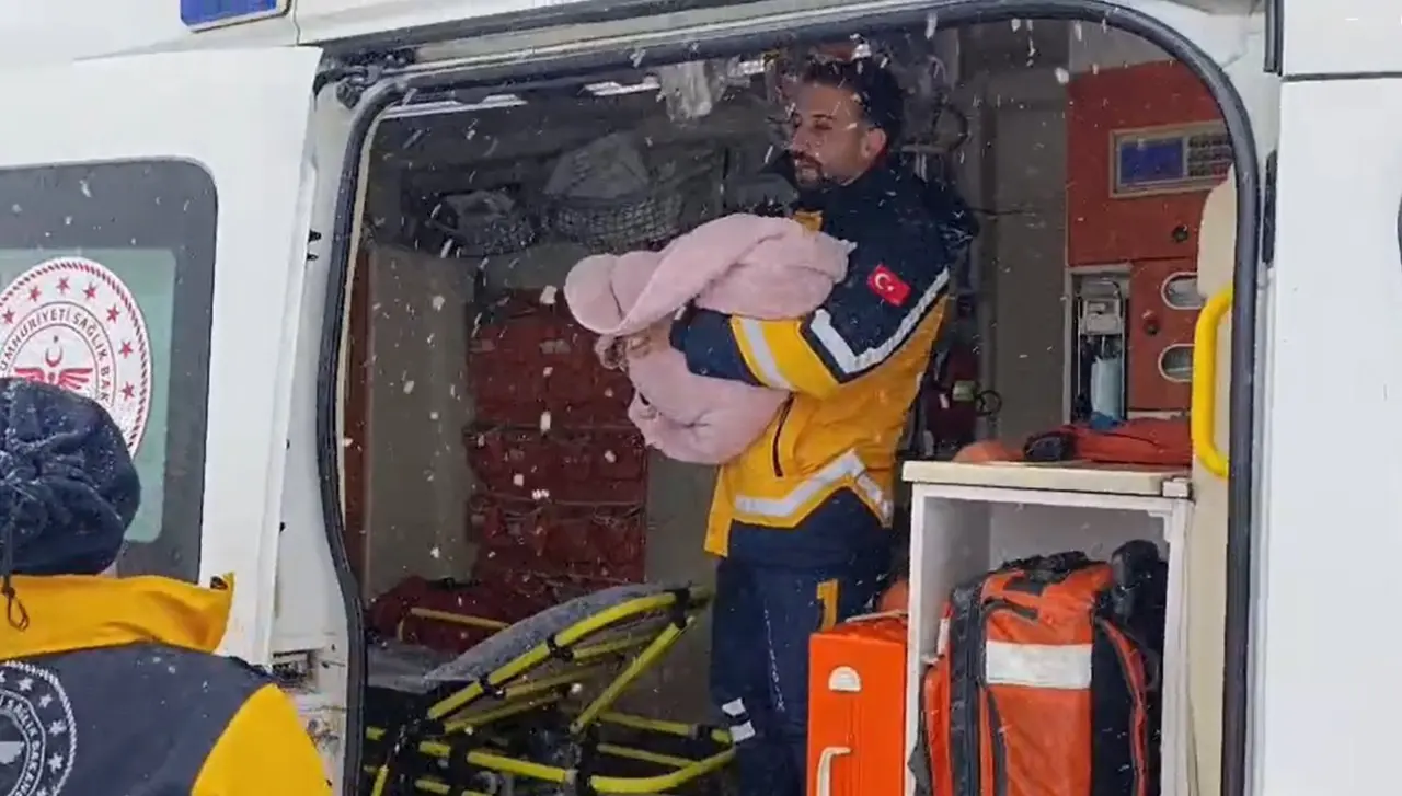 Aynı bölgede bir ambulans da yoğun kar nedeniyle yolda kaldı. İl Özel İdaresi ekipleri ambulansı kurtararak hastaya ulaştı.