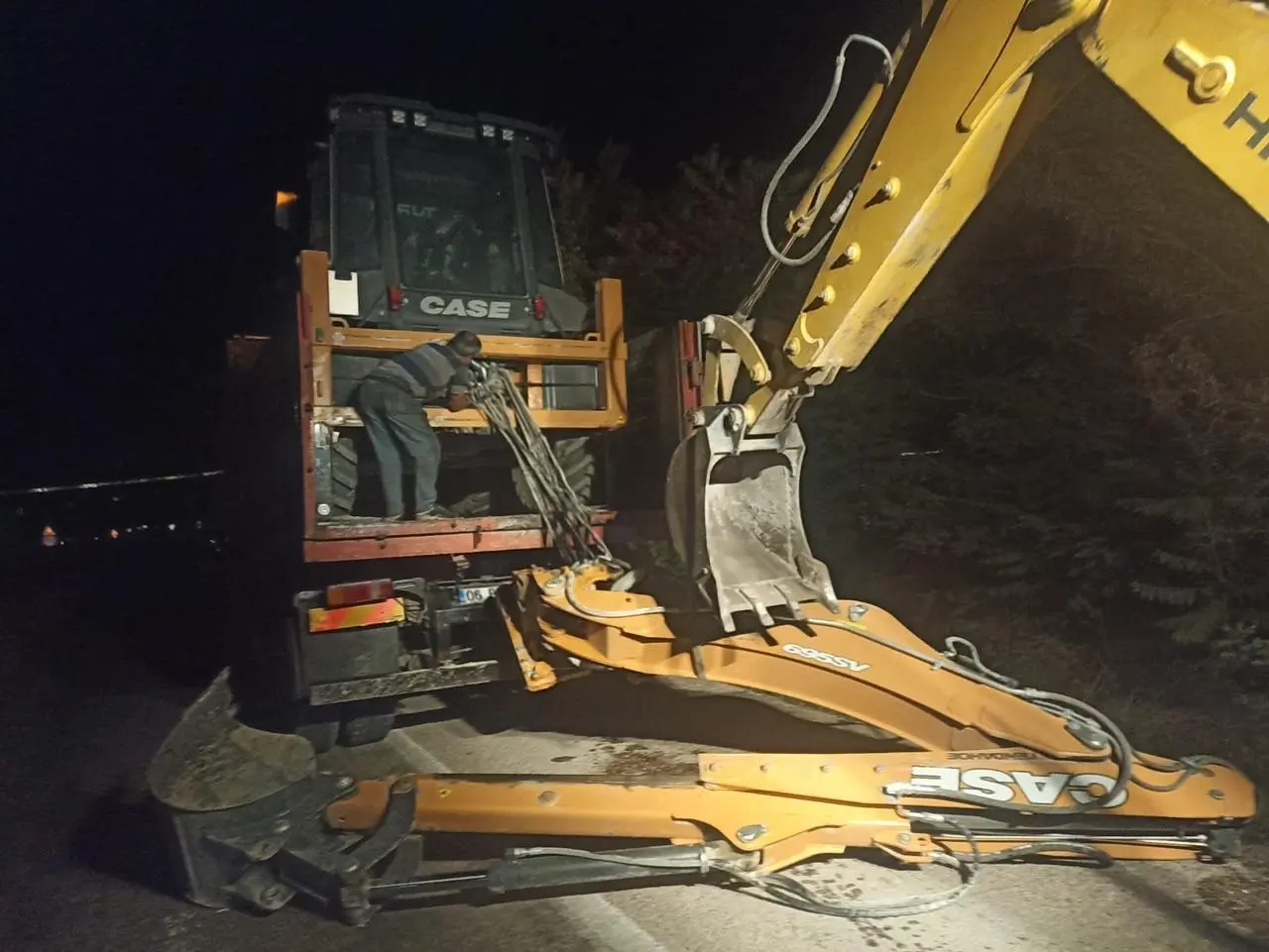 Nallıhan'da iş makinesi taşıyan kamyon kömür taşıma bandına çarptı. Kazada yaralanan olmazken, sürücü Mehmet Turan durumu değerlendirdi.