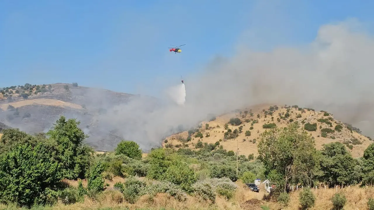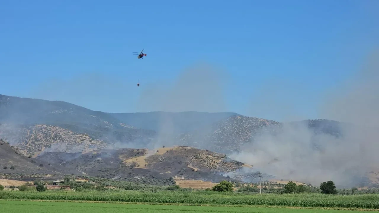 Aydın'ın Nazilli ilçesinde zirai alanda başlayan yangına ekipler havadan ve karadan yoğun şekilde müdahale ediyor.