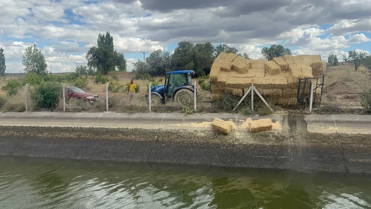 Tuzköy Mahallesi'nde saman balyası taşıyan traktör sarsıldı. Römorkta bulunan dört kişi su kanalına düştü.