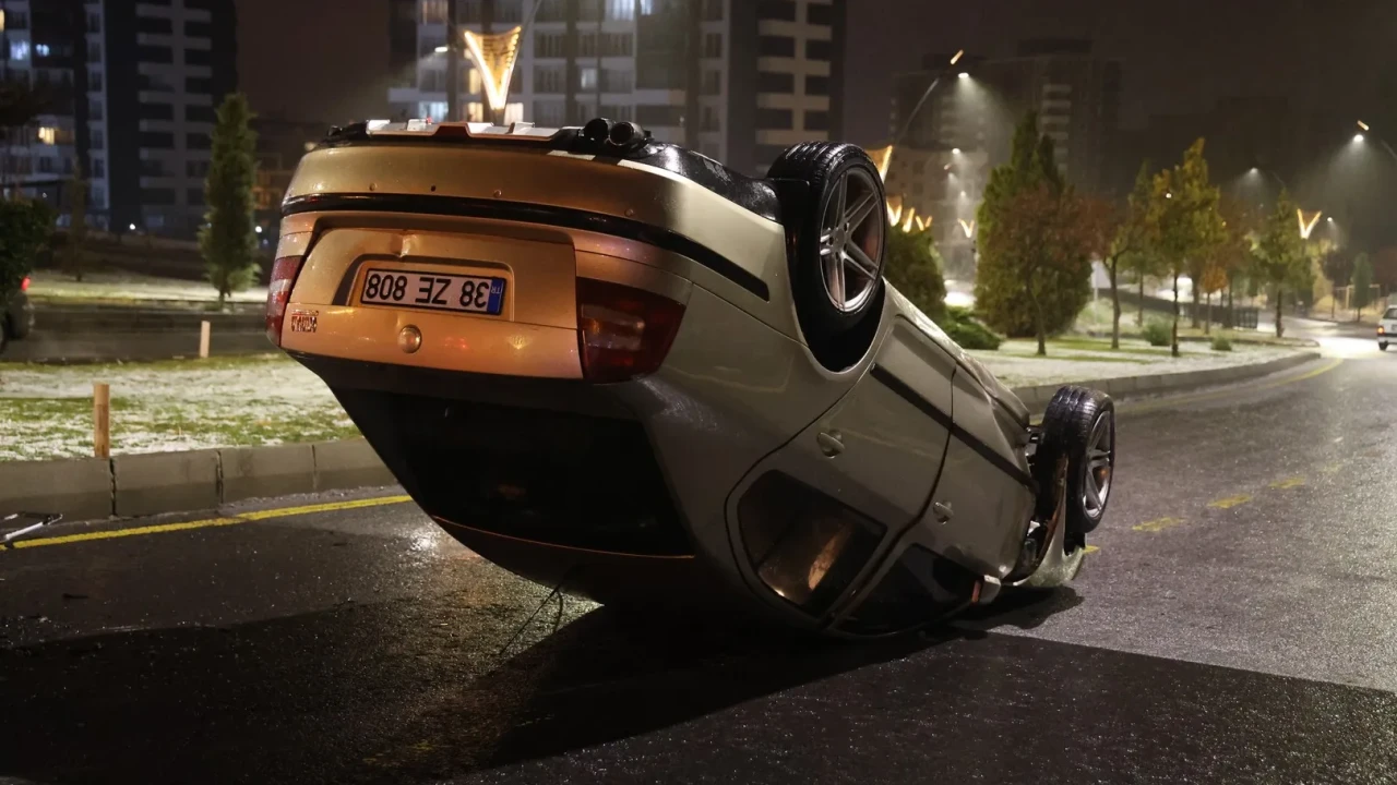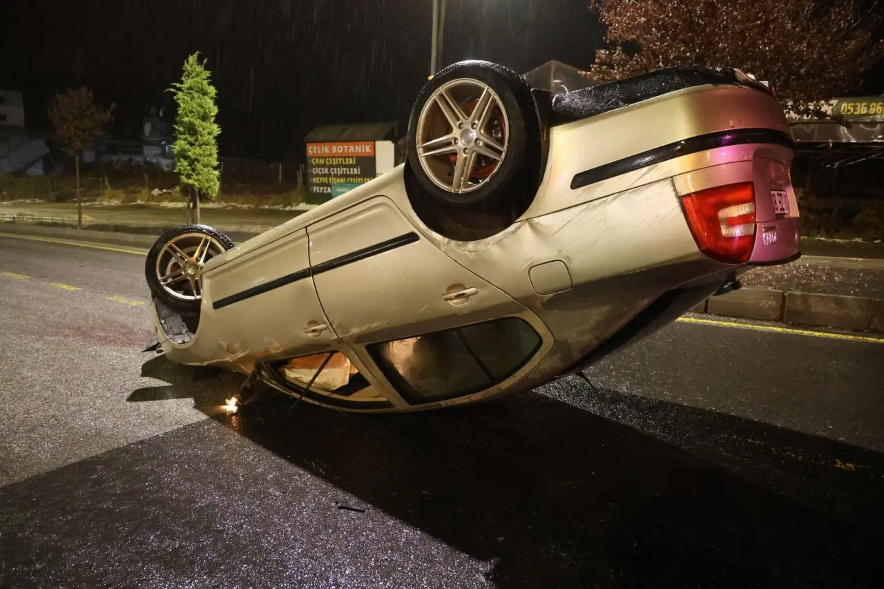 Nevşehir'de kontrolünü kaybeden otomobil refüje çarparak takla attı, sürücü olay yerinden kaçtı.
