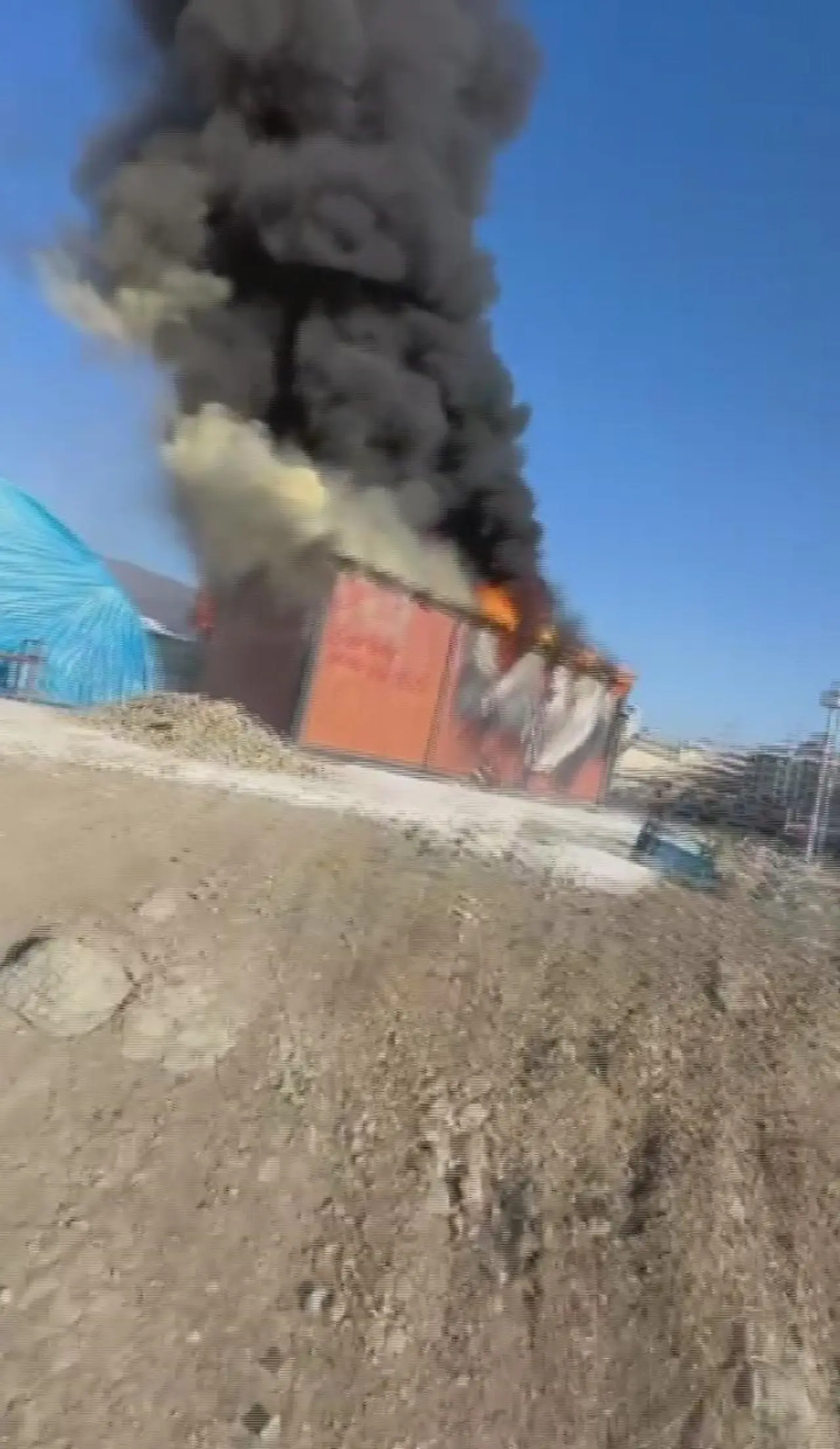 Operatör Özkan Oluç, iş makinesiyle alevlerin arasına girerek konteyneri uçurumdan yuvarladı. Bu hamle diğer konteynerlere sıçramasını önledi.