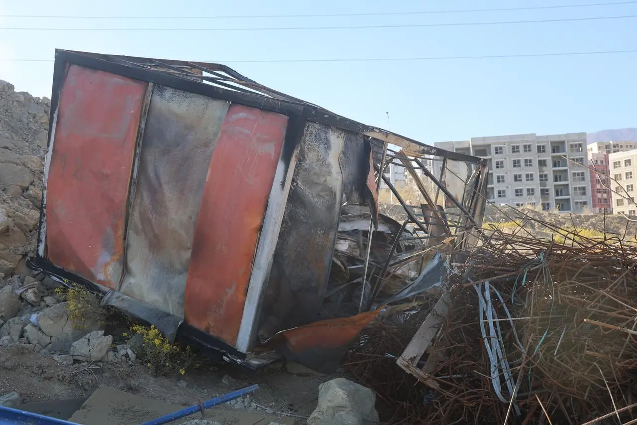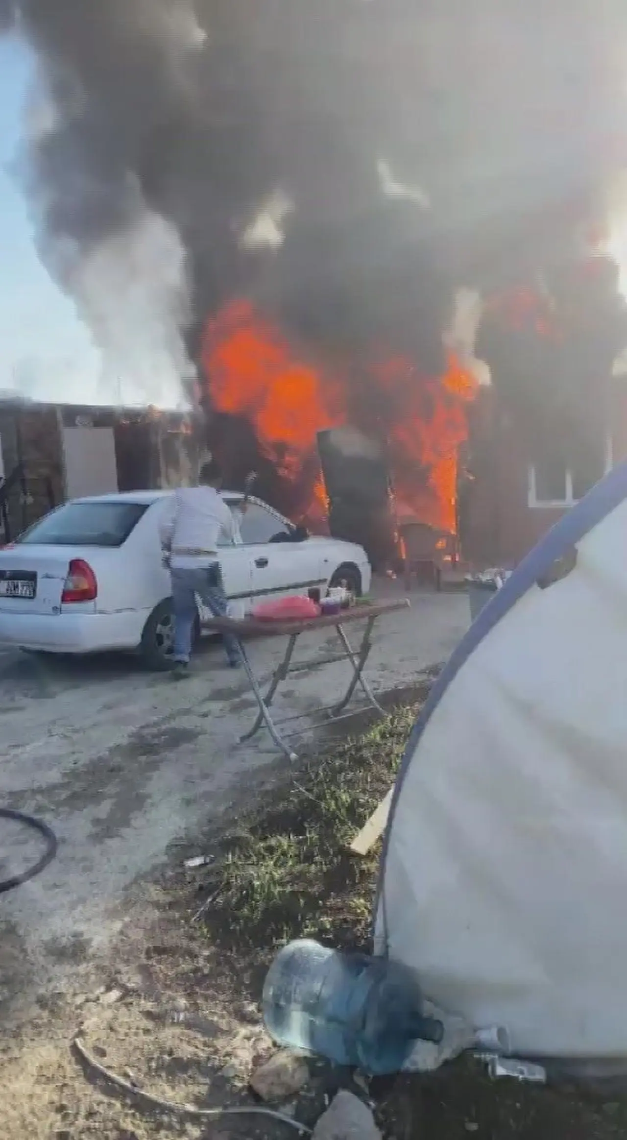 Antakya Alazı Mahallesi'ndeki şantiyede bir konteyner alev aldı. İşçiler müdahale etse de yangın kontrol altına alınamadı.