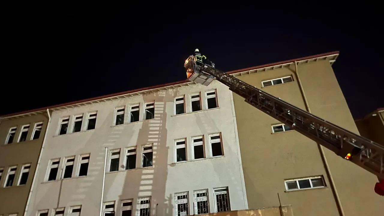 Cumhuriyet Mahallesi'ndeki metruk lise binasının çatısından kedi sesleri duyuldu. Mahalle sakinleri durumu fark ederek itfaiyeye haber verdi.