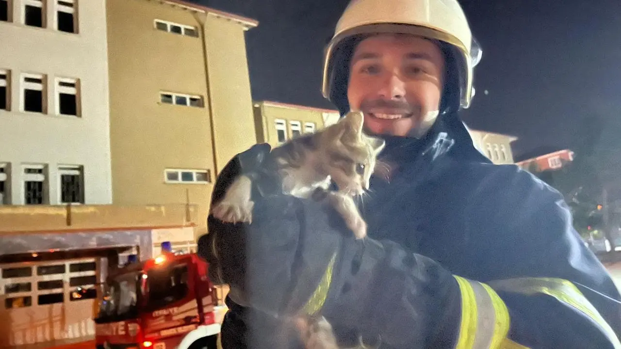 İtfaiye ekiplerinin başarılı operasyonu sonucu yavru kedi çatıdan indirildi. Sağlık durumu iyi olan kedi, güvenli bir bölgeye bırakıldı.