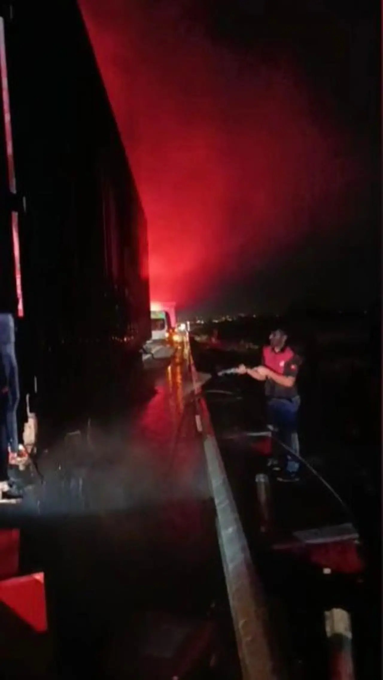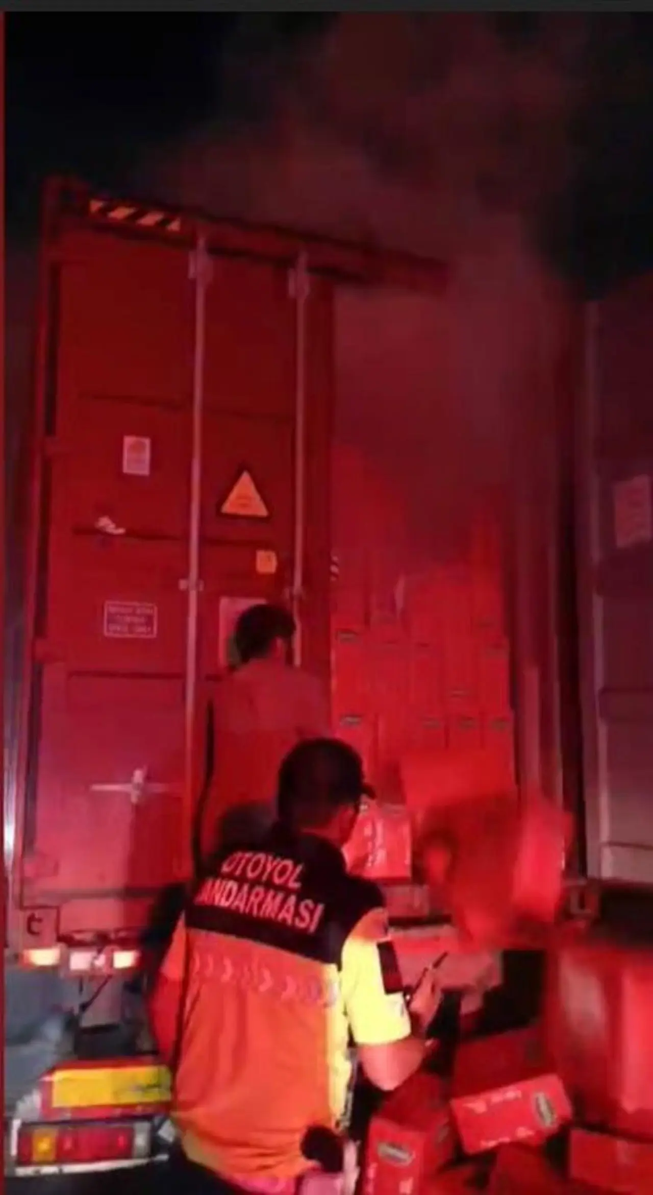 Aracını emniyet şeridine çeken sürücü durumu bildirdi. İtfaiye ve jandarma ekipleri hızla olay yerine ulaştı.