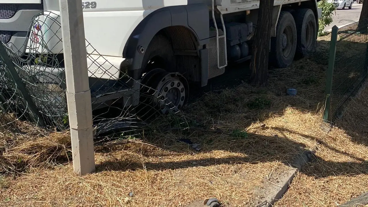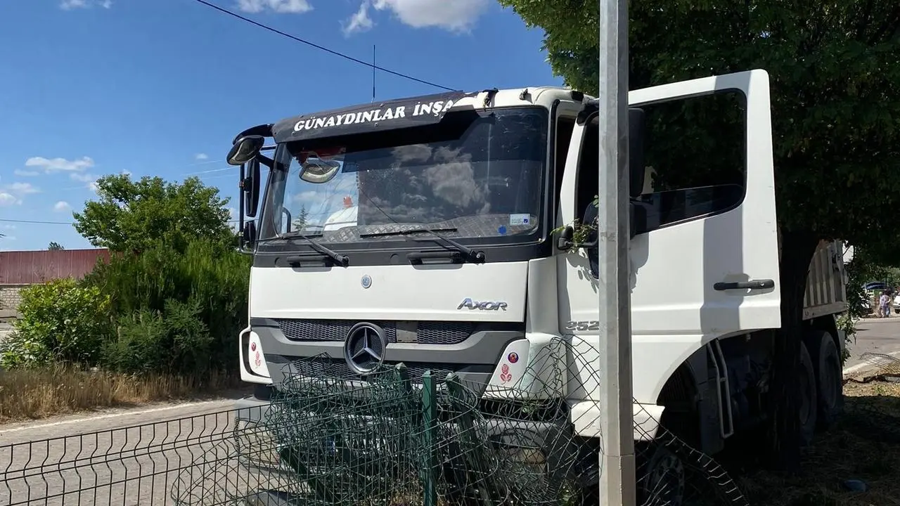 Kontrolden çıkan kamyon yol kenarındaki tel örgülere çarparak durdu. Kazada şans eseri yaralanan olmadı.