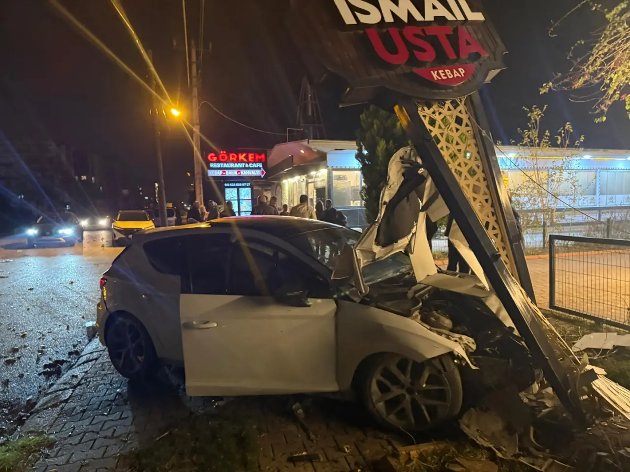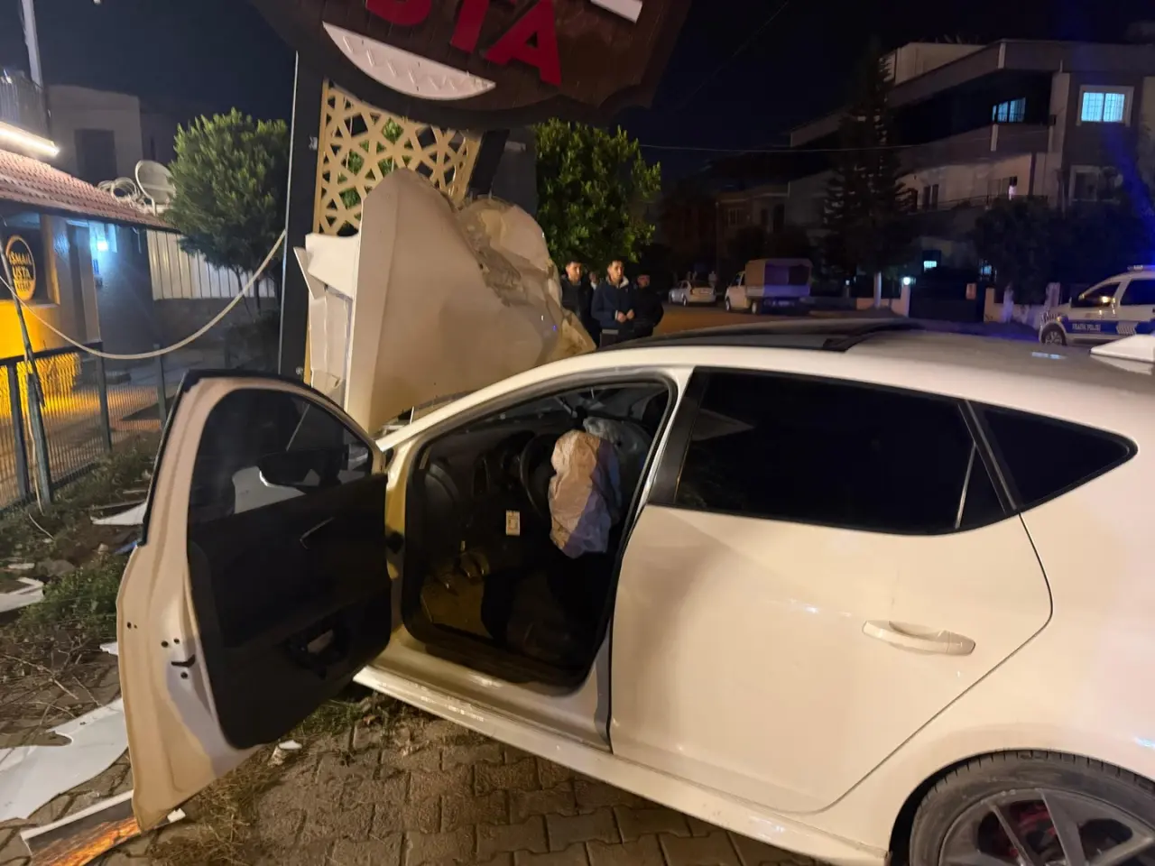 Payas'ta lokanta tabelasına çarpan sürücü aracı bırakıp kaçtı