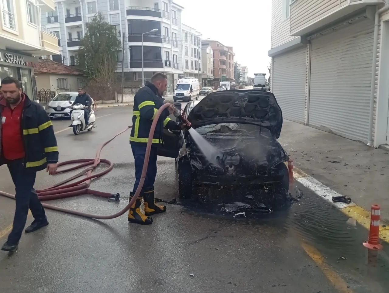 Olay sırasında çevredeki vatandaşlar kısa süreli panik yaşadı. İtfaiyenin hızlı müdahalesiyle yangın büyümeden söndürüldü.