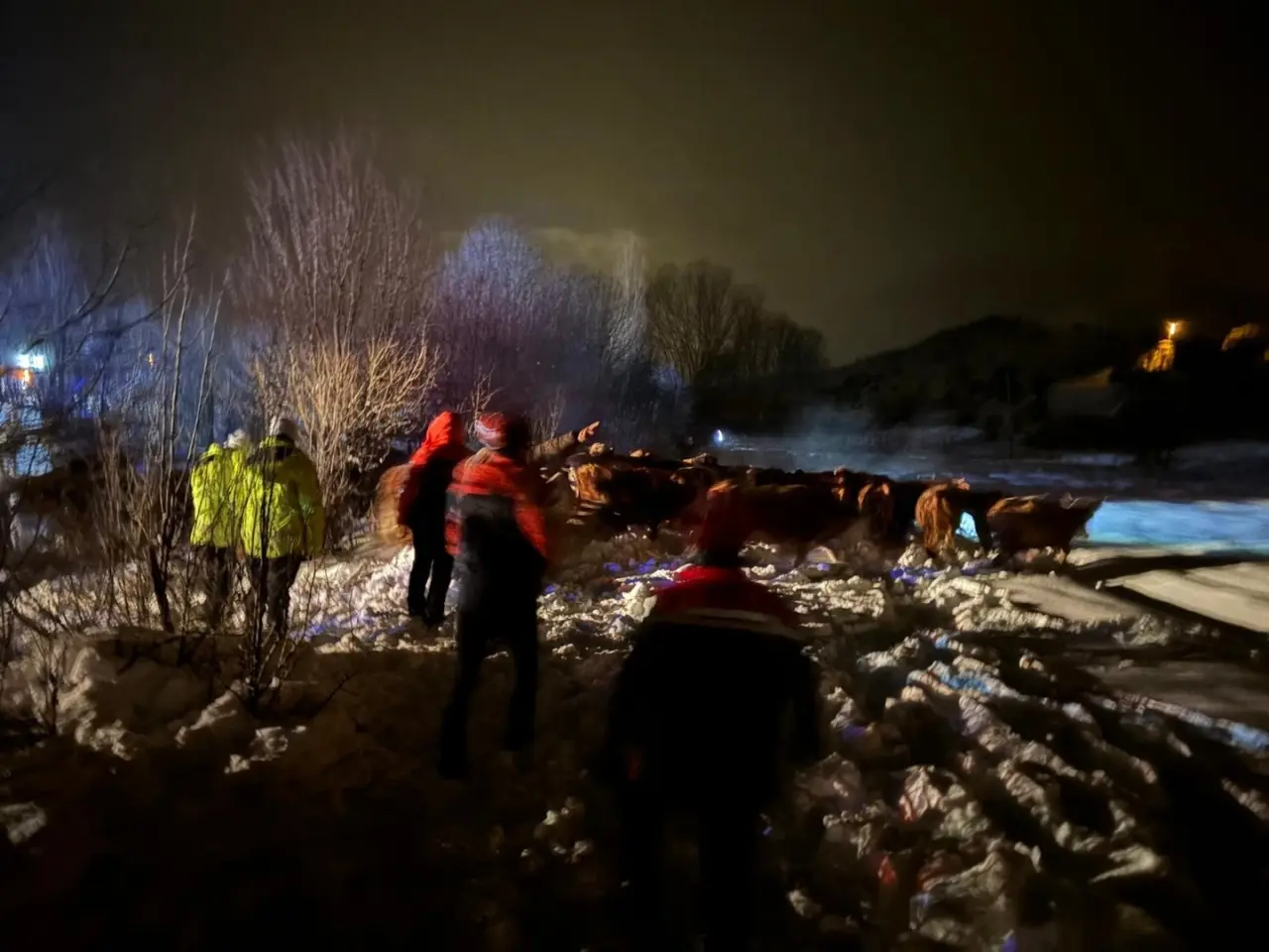 Bölgede yoğun kar ve soğuk hava koşulları kurtarma faaliyetlerini zorlaştırdı. Ancak ekiplerin çabalarıyla hayvanlar güvenli şekilde ahırlara taşındı.