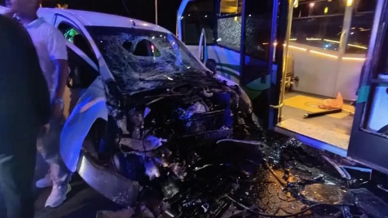 Gece 22.30 sıralarında Menderes Bulvarı üzerinde iki araç çarpıştı. F.B.'nin kullandığı minibüs ile M.B.İ.'nin kullandığı hafif ticari araç kafa kafaya geldi.