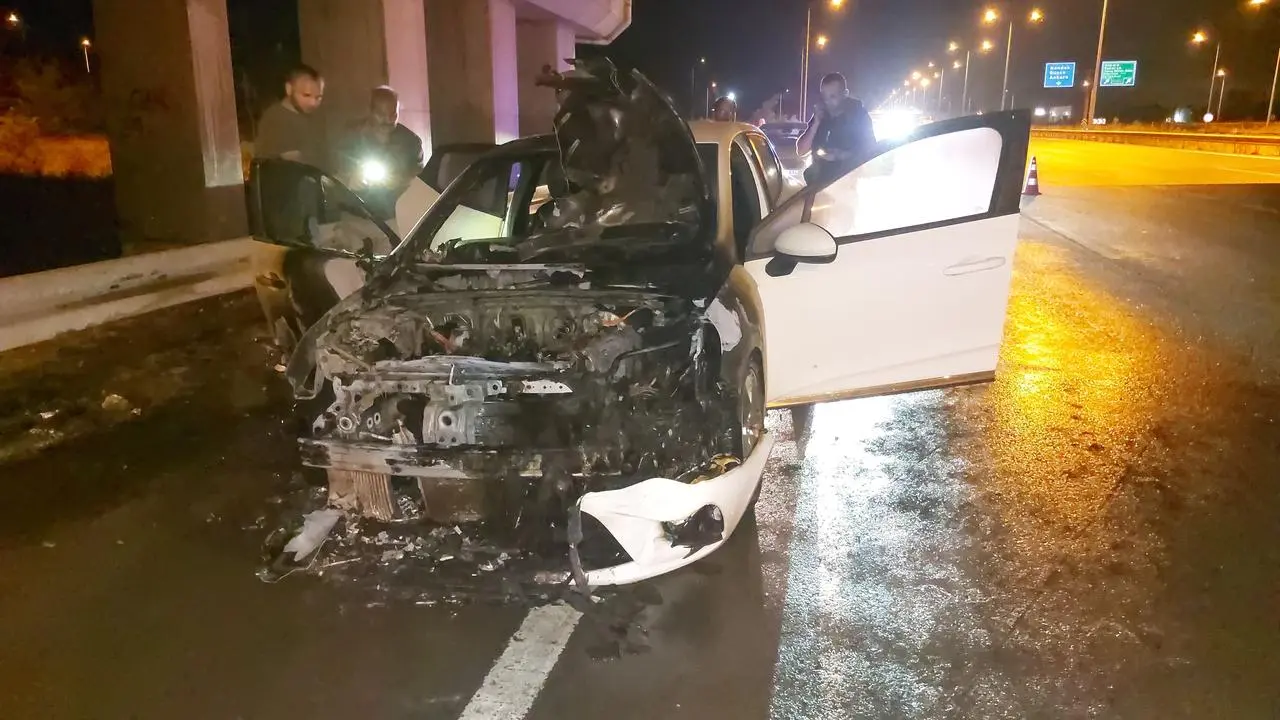 Adapazarı yönünde seyreden otomobil, D100 karayolunda alev alarak kullanılamaz hale geldi.