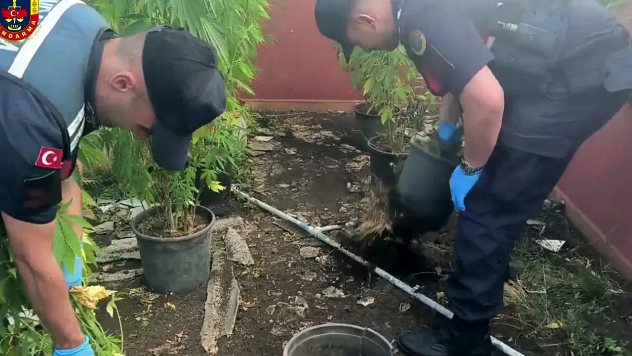 Jandarma ekipleri Geyve'de şüpheli bir ikamette arama gerçekleştirdi. Aramada 302 kök kenevir bitkisi ve 9 gram kenevir tohumu bulundu.