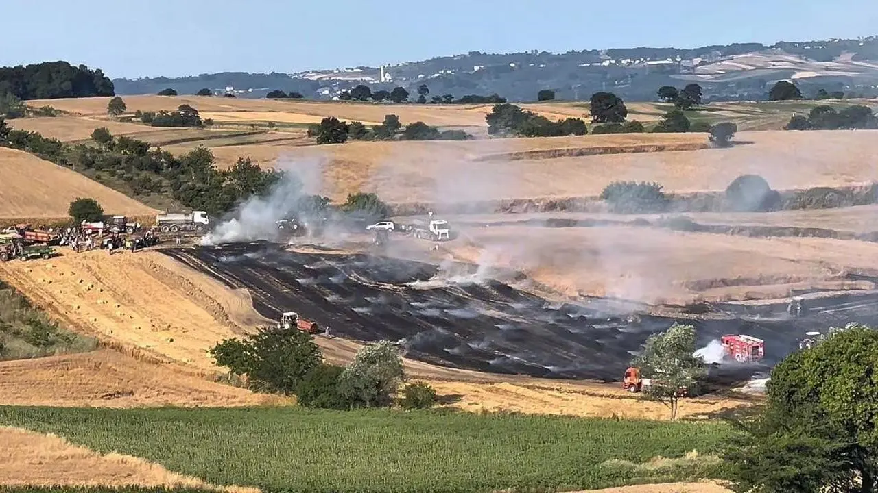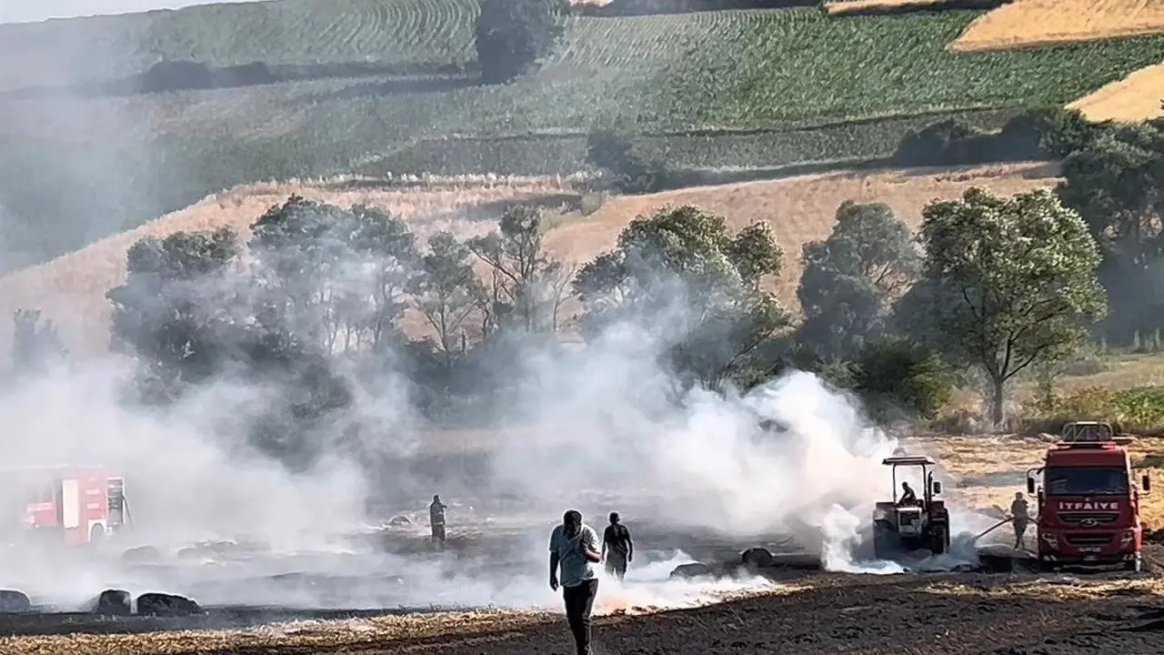 Sakarya'nın Kaynarca ilçesinde çıkan yangında 200 saman balyası ile 15 dönüm tarla kullanılamaz hale geldi.