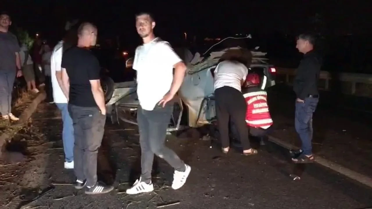 Tek taraflı gerçekleşen kazada otomobil ağır hasar aldı. Yaralılar ilk müdahalenin ardından hastaneye sevk edildi.