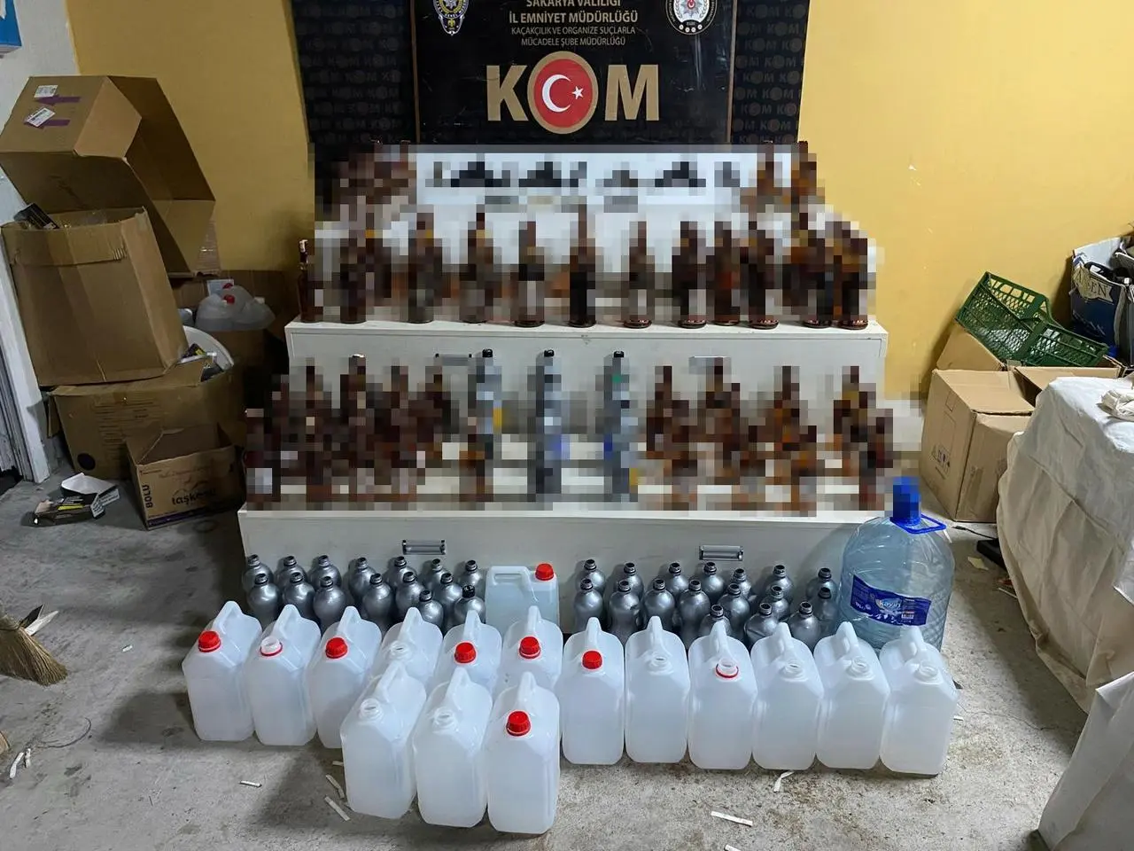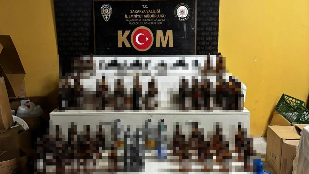 Sakarya'da alkollü eğlence mekanı kılıfı altında kaçak içki üretimi yapılan depoya operasyon düzenlendi. Operasyonda ruhsatsız tabancalar ve çok sayıda kaçak içki ele geçirildi.