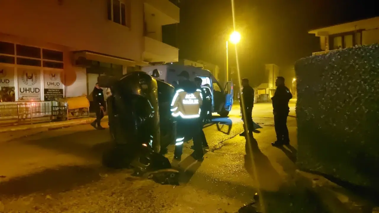 Hızla kontrolden çıkan araç bir evin beton çitine çarptı. Çarpma sonrası otomobil yan yatarak durdu.
