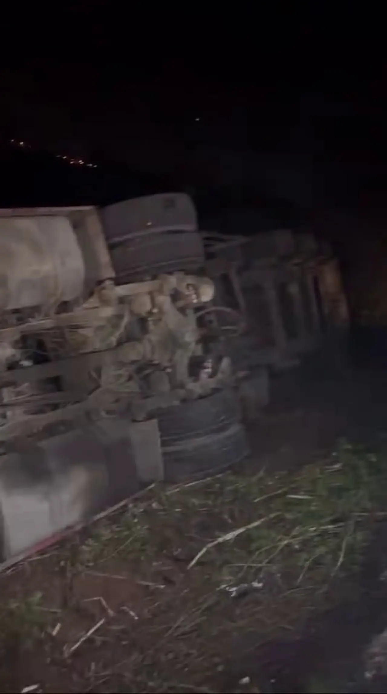 Kaza anı cep telefonu kamerasına yansıdı. Görüntülerde kamyonun devrilme anı net şekilde görülüyor.