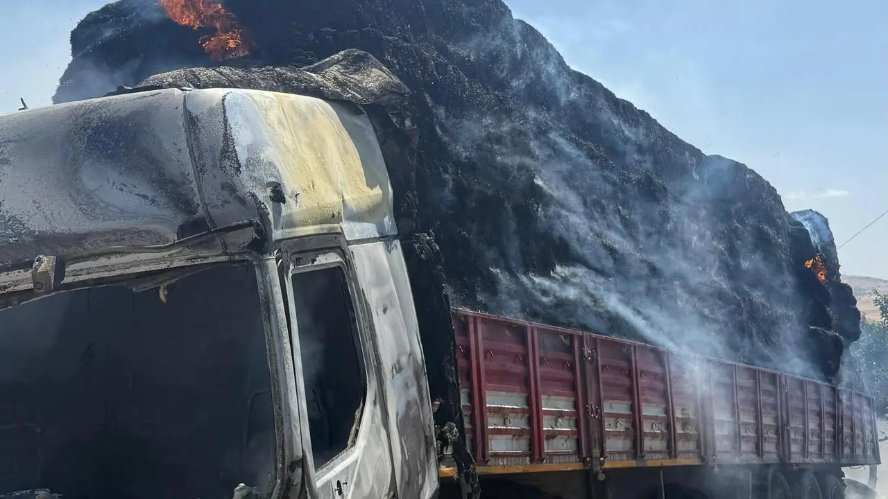 Tır ve saman balyaları tamamen yanarken can kaybı yaşanmadı. Yetkililerin olayla ilgili teknik incelemesi devam ediyor.