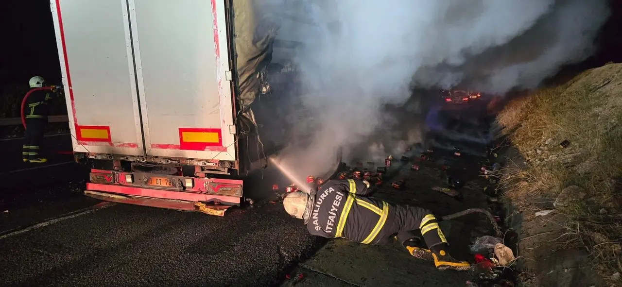 Şanlıurfa’da salça yüklü tırın alev alması sonucu çıkan yangın itfaiye ekipleri tarafından kontrol altına alındı.