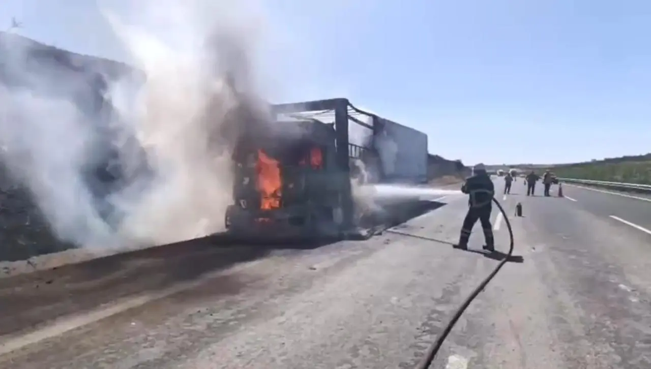 İtfaiye ekipleri zorlu mücadele sonucu alevleri kontrol altına aldı. Kazada can kaybı yaşanmazken tır tamamen yandı.