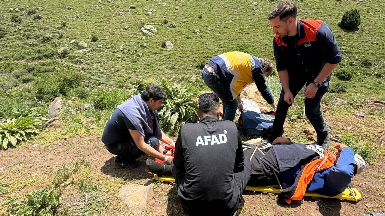 AFAD ekipleri zorlu arazi şartlarında çobanı bulundukları yerden çıkardı. Yaralı çoban, 112 ekiplerine teslim edildi.