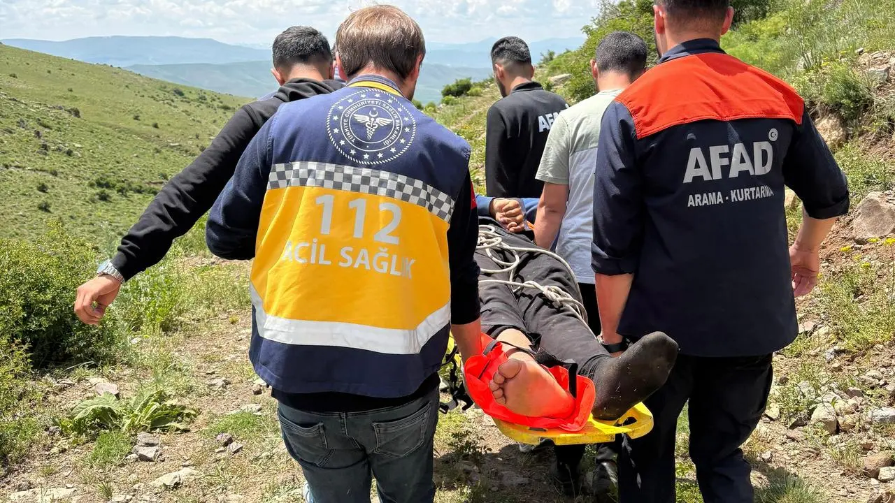 Sarıkamış'ta koyunlarını otlatırken kayalıklardan düşen 18 yaşındaki çoban Abdülkadir İlimli'nin ayağı kırıldı.