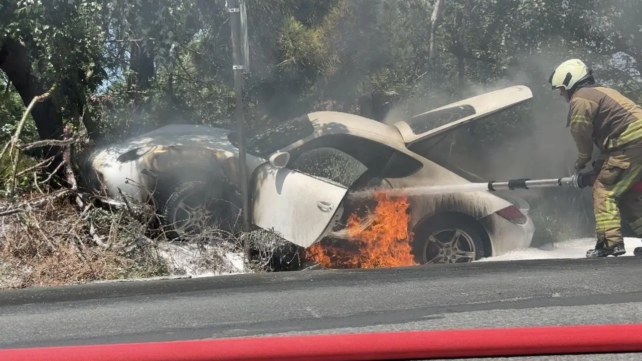 Lüks araç sürücüsü kendi imkanlarıyla araçtan çıkmayı başardı. Sürücünün araçtan çıkmasının ardından otomobil aniden alev aldı.