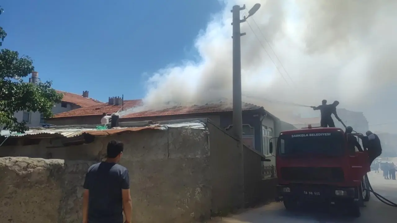 Sivas'ın Şarkışla ilçesinde müstakil bir evin çatısında çıkan yangın mahallede büyük paniğe neden oldu.