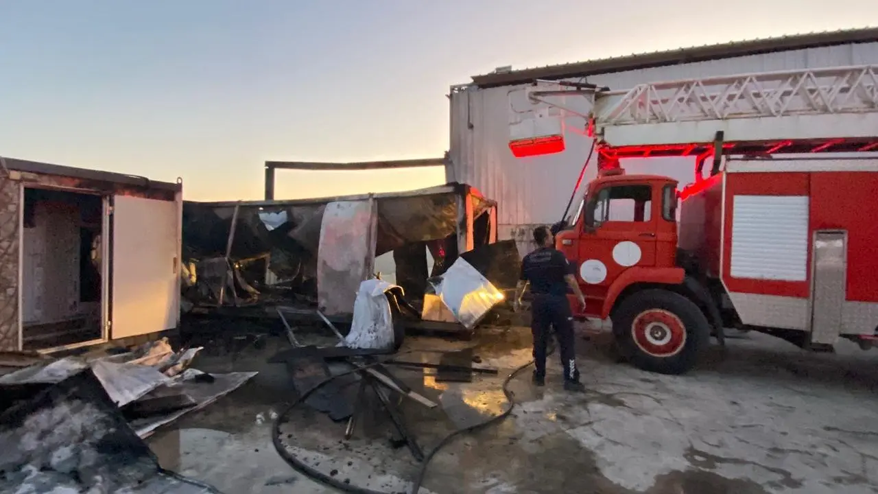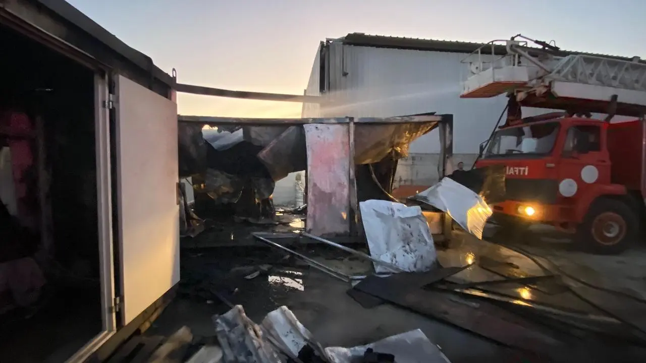 Antalya'nın Serik ilçesindeki plastik kasa deposunda işçilerin kaldığı konteynerde elektrik kontağından yangın meydana geldi.