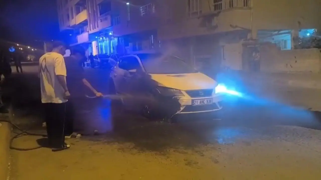 Olay, Barış Mahallesi'ndeki Kurtalan Kaymakamlığı önünde meydana geldi. 21 AHC 938 plakalı araç aniden yanmaya başladı.