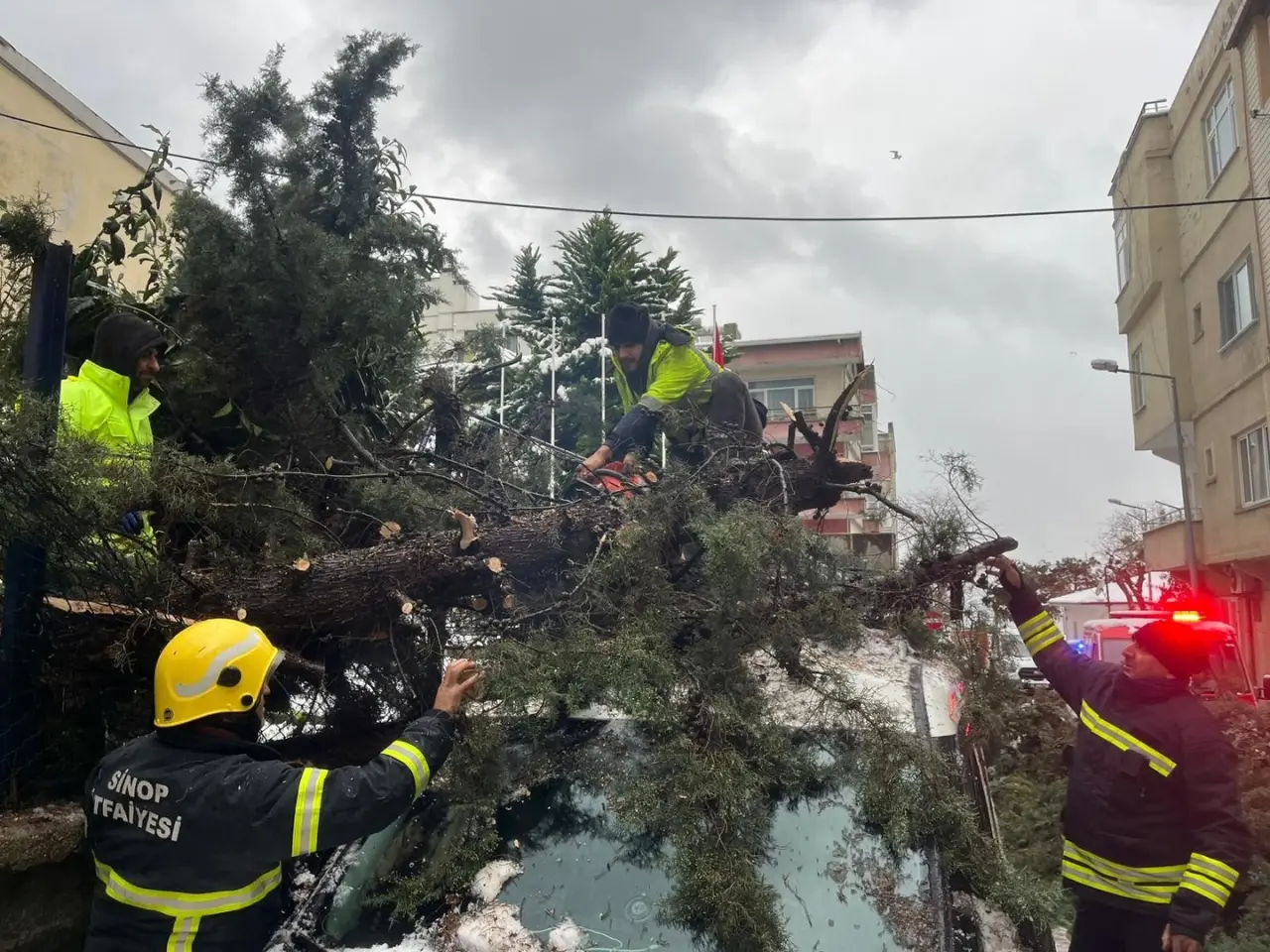 Sinop Belediyesi ekipleri, ağacı kaldırmak için çalışma başlattı. Trafik akışını aksatan enkaz kısa sürede temizlendi.