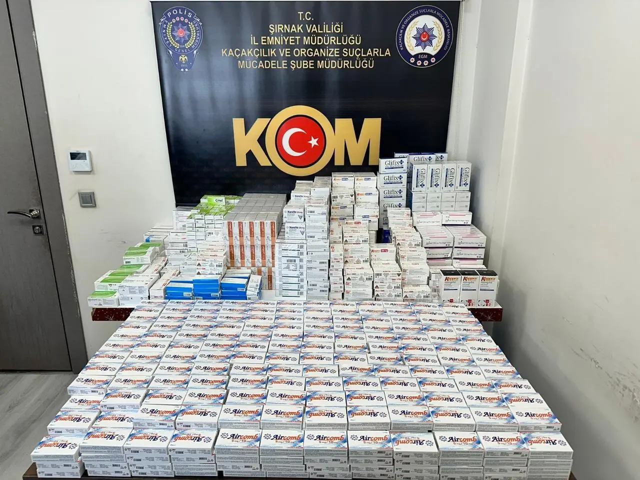 Operasyonlarda 4 bin 660 paket sigara ve 68 bin 766 adet ilaç ele geçirildi. Ayrıca elektronik sigara tütünü, puro ve çeşitli emtialar da yakalandı.