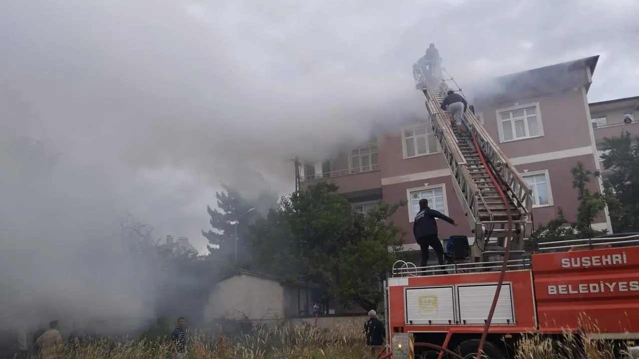 Sivas'ın Suşehri ilçesinde üç katlı binanın çatı katında çıkan yangın başarıyla kontrol altına alındı ve söndürüldü.