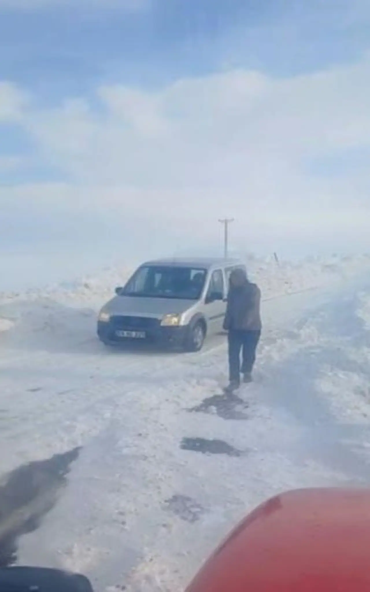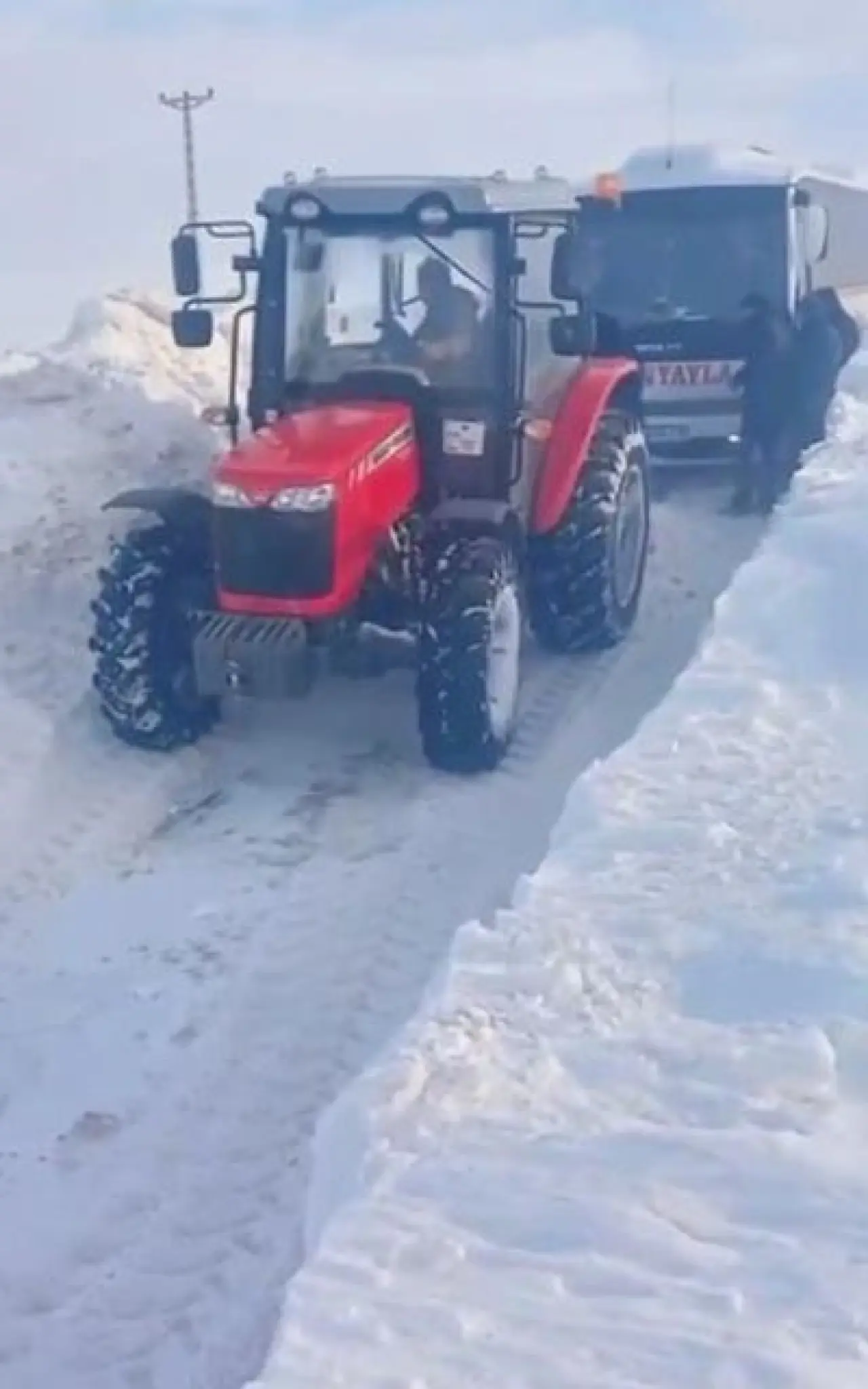 Sivas'ta kar fırtınasına yakalanan bir yolcu minibüsü, Ulaş ilçesi Kazanpınar köyü yakınlarında mahsur kaldı. Köy muhtarı İsa Oğuz, traktörüyle yolu açarak minibüsü kurtardı.