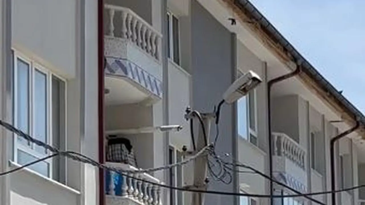 Apartmanın çatısından sarkan ipe takılan kuş, çaresizce çırpınmaya başladı. Çevredeki vatandaşlar durumu fark ederek hemen itfaiyeye haber verdi.