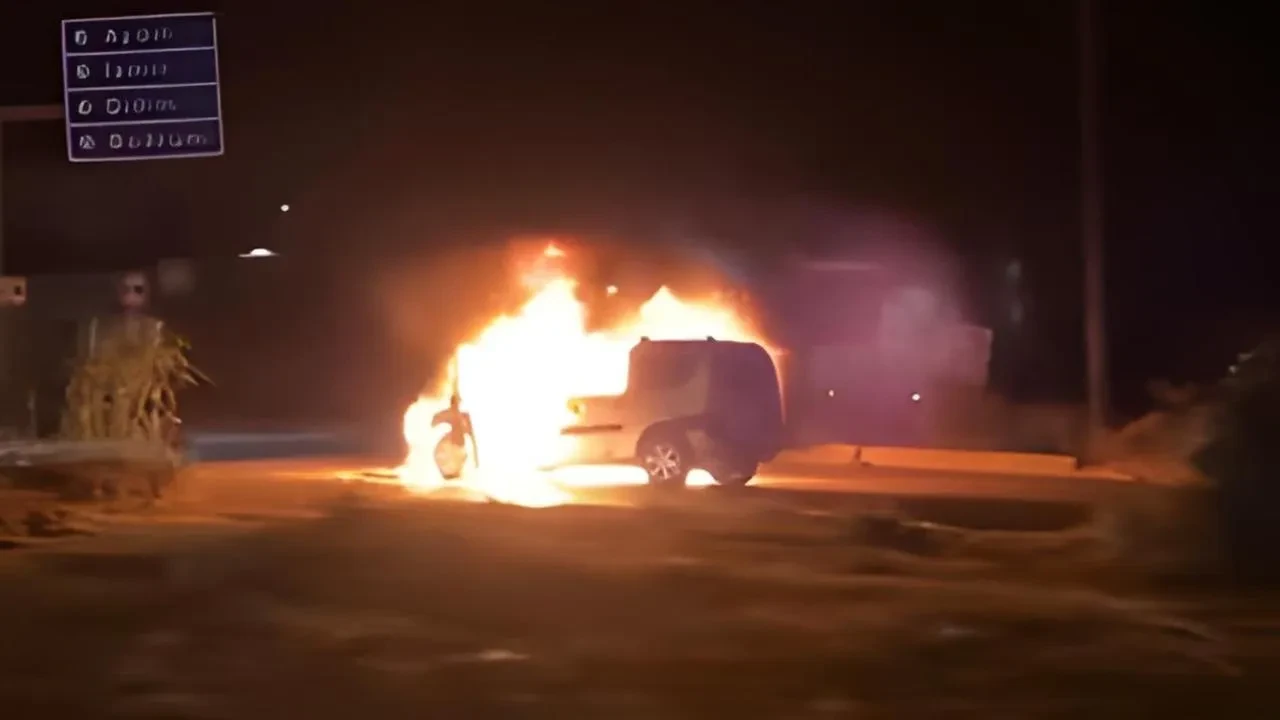 Aydın'ın Söke ilçesinde seyir halindeki bir otomobil aniden alev alarak dakikalar içinde tamamen yanarak kullanılamaz hale geldi.