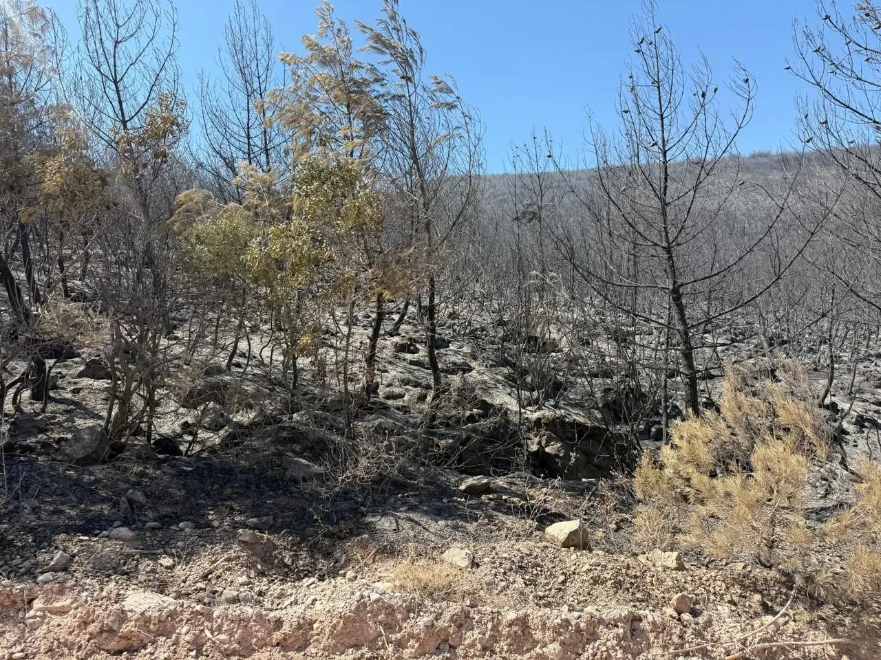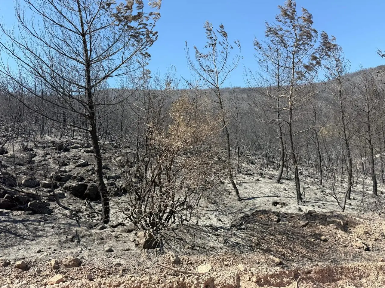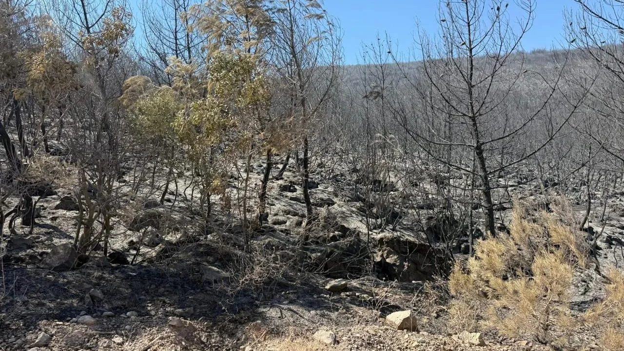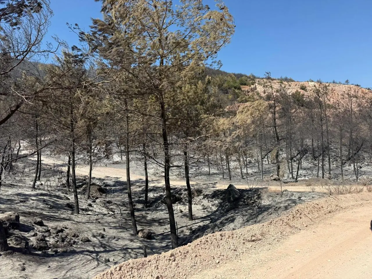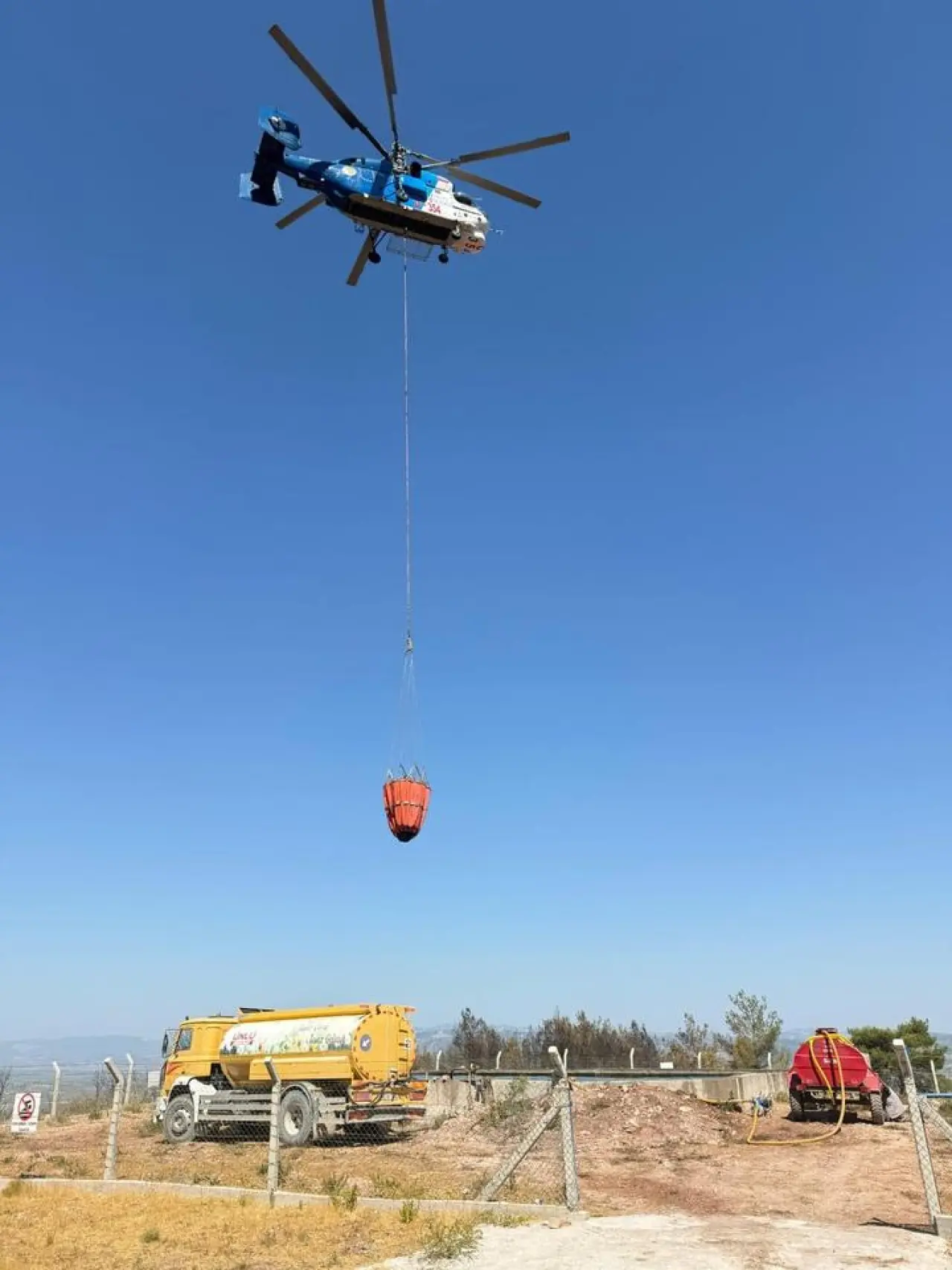 İzmir Orman Bölge Müdürlüğü ekipleri karadan ve havadan müdahale etti. Rüzgar şiddeti düne göre azaldı.