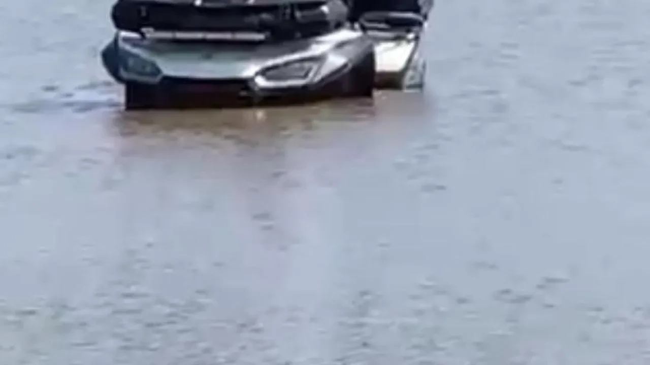 Göle giren ATV sürücüsü zor anlar yaşadı
