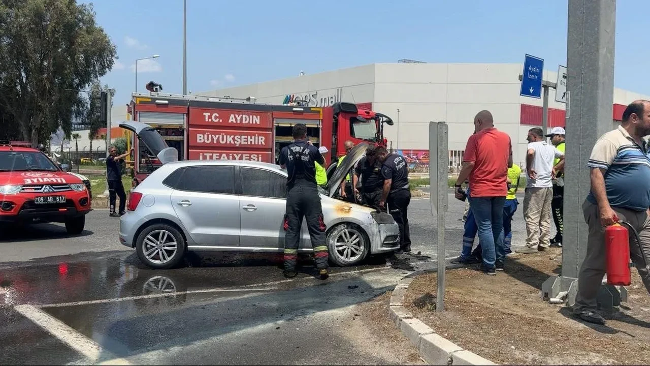Aydın'ın Efeler ilçesinde test sürüşü sırasında alev alan otomobilde büyük çapta maddi hasar meydana geldi.