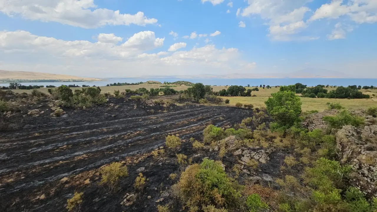 Bitlis'in Tatvan ilçesinde çıkan yangında meyve ağaçları ve yemlik otların bulunduğu 50 dönümlük alan küle döndü.