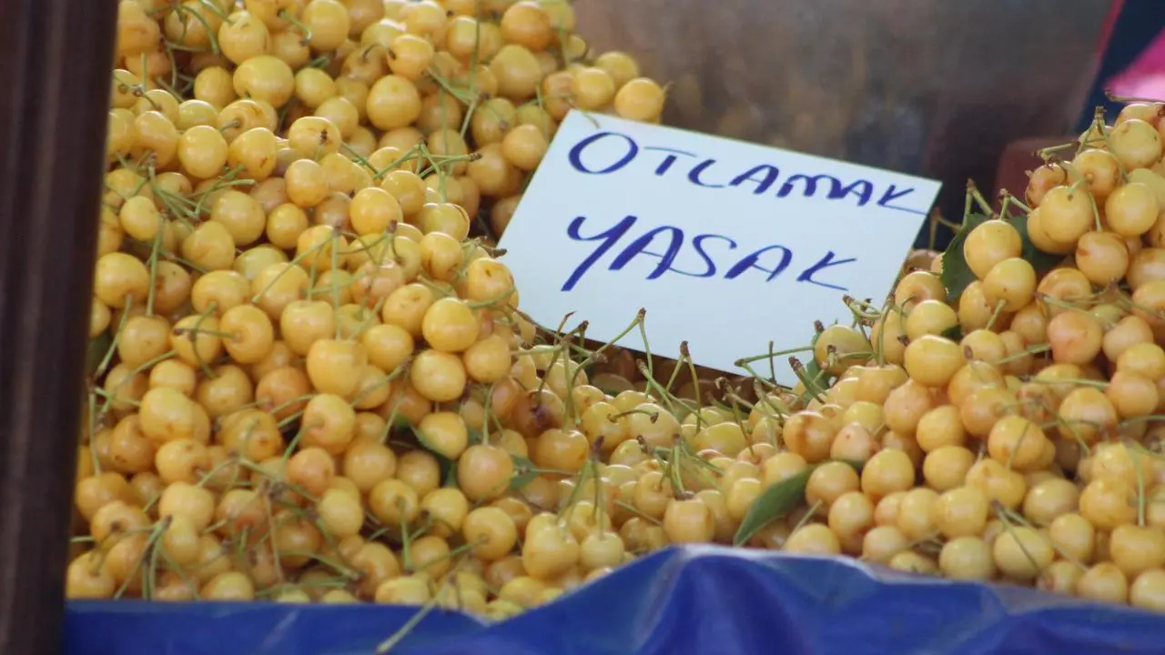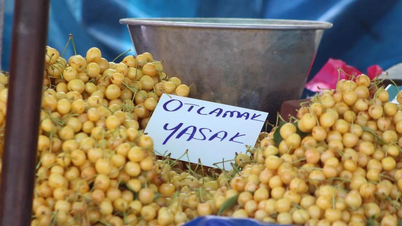 Tekirdağ'da düzenlenen Kiraz Festivali'nde tezgahlara asılan "otlamak yasaktır" yazısı vatandaşların tepkisine neden oldu.