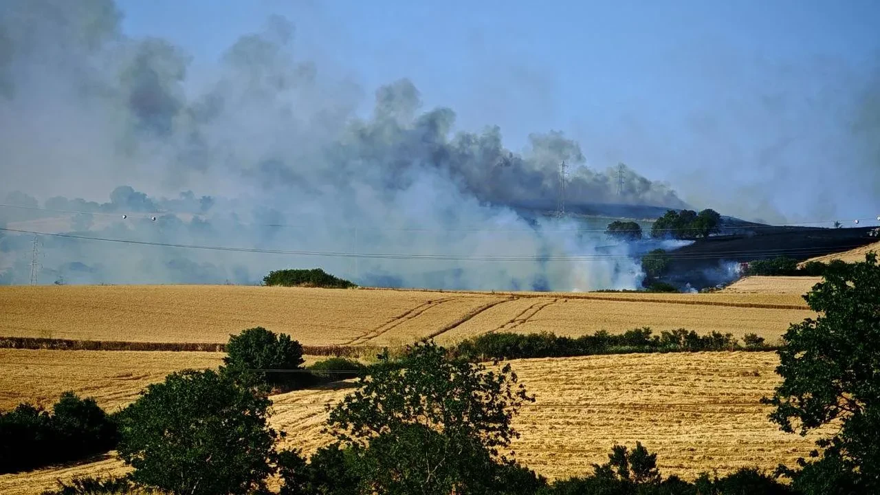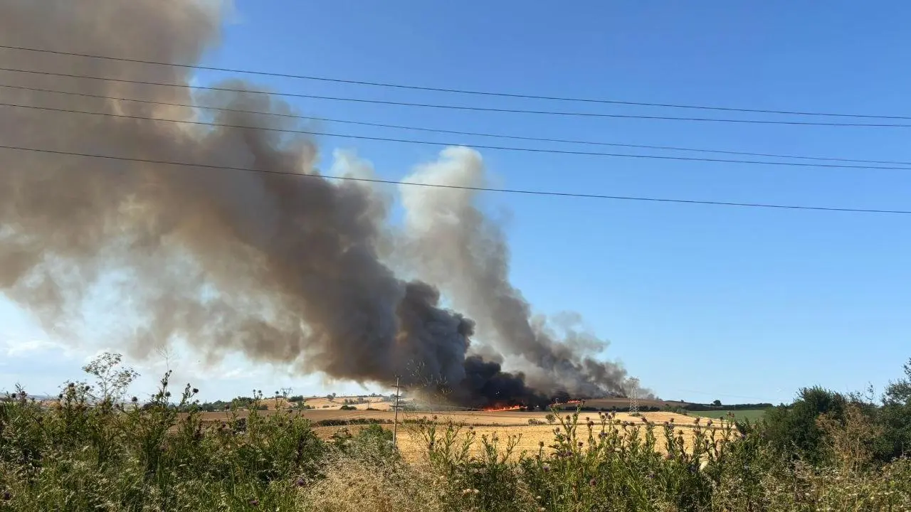 İshakça Mahallesi'nde öğle saatlerinde buğday tarlasında yangın meydana geldi. Balya makinesinin çıkardığı kıvılcım, rüzgarın etkisiyle hızla yayıldı.