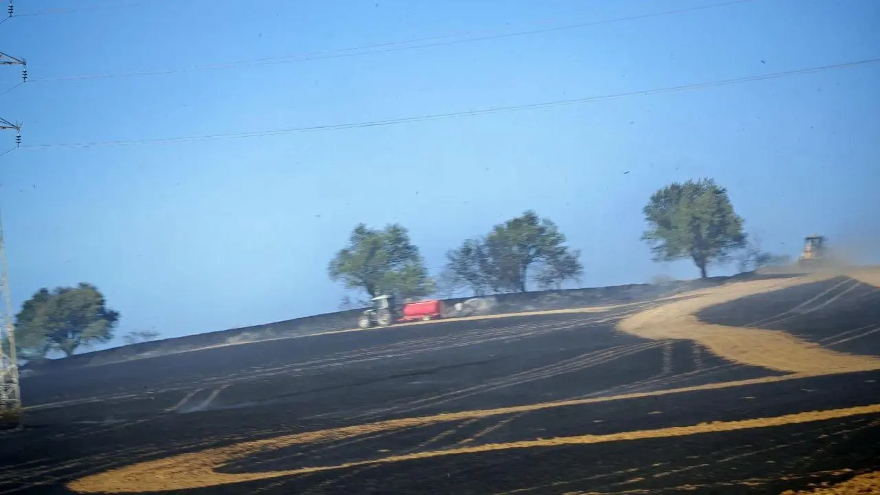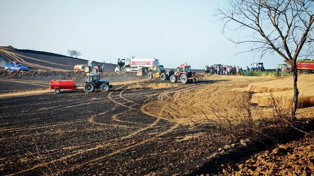 Tekirdağ'ın Malkara ilçesinde çıkan tarla yangınında 200 dönümlük buğday arazisi tamamen yanarak kül oldu.
