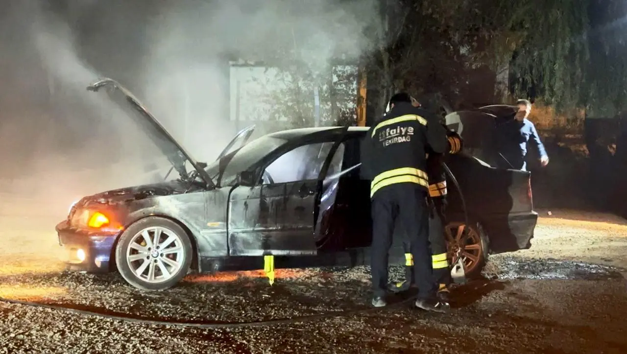 Tekirdağ Muratlı'da park halindeki bir otomobilde yangın çıktı ve paniğe yol açtı.