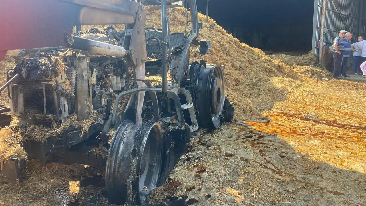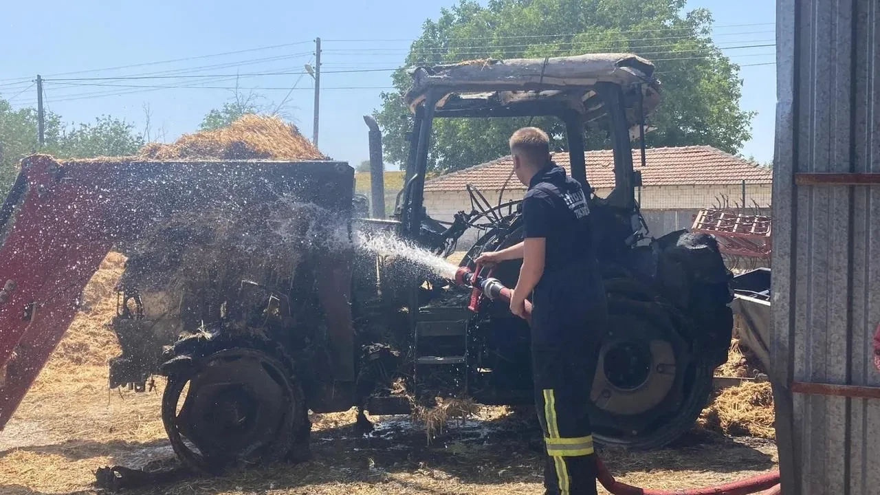 Yangına müdahale etmeye çalışan bir vatandaş kollarından yaralandı. Traktör tamamen yanarak kullanılamaz hale geldi.
