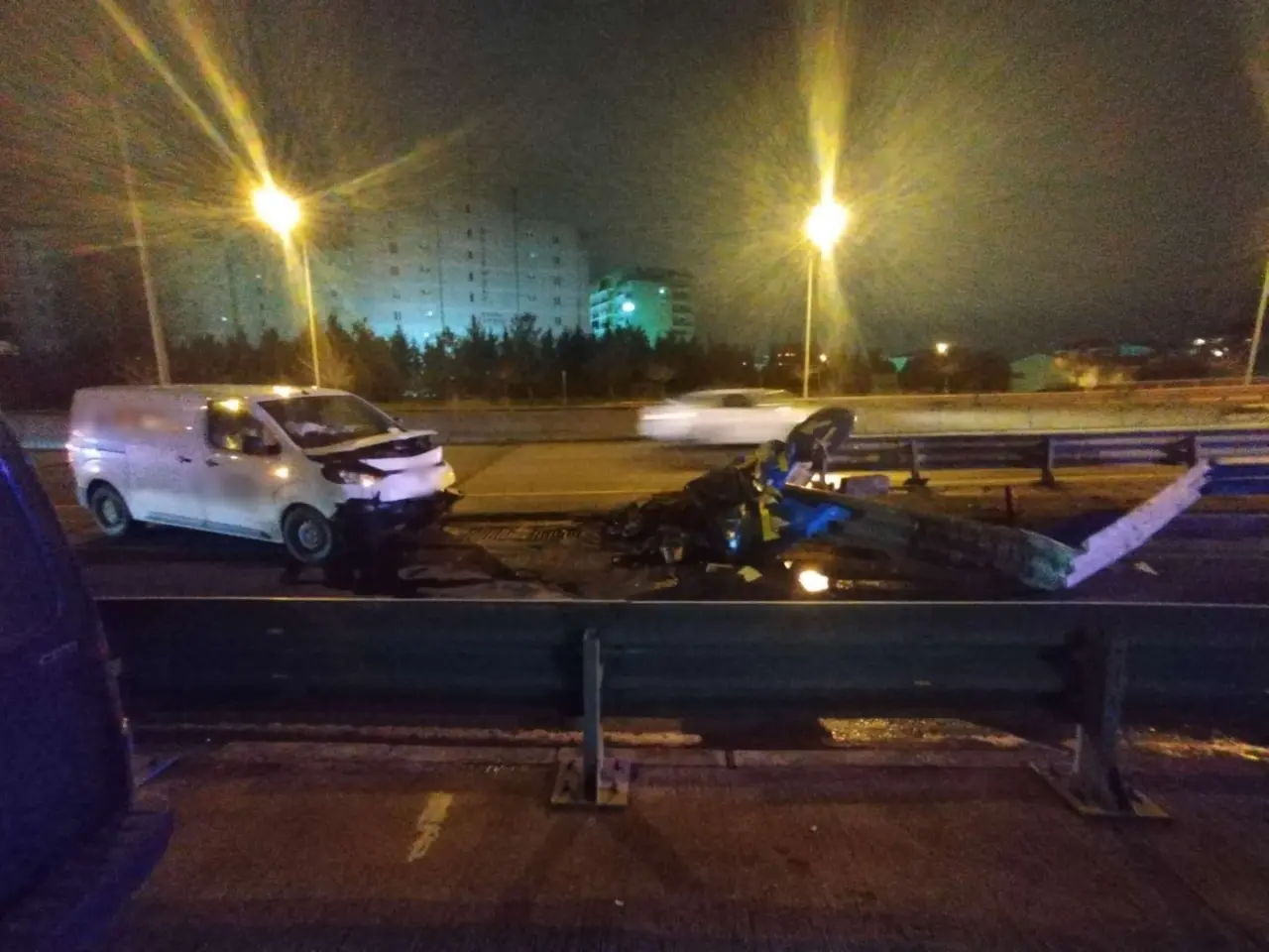 Tekirdağ Çorlu'da alkollü sürücünün kullandığı kamyonet bariyere çarptı, kaza anı kameraya yansıdı.