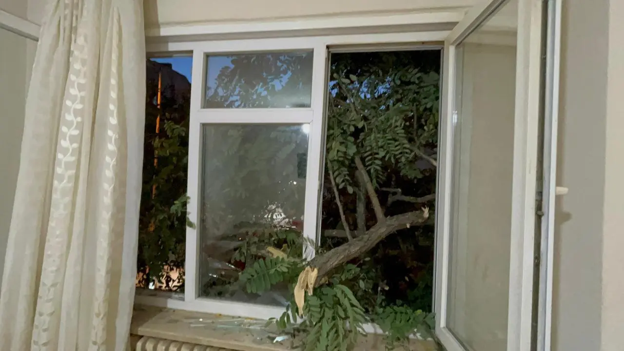 Ümriye Şengelir, ağacın altından hafif sıyrıklarla kurtuldu. Ağaç, evin camlarını kırarak maddi hasara yol açtı.